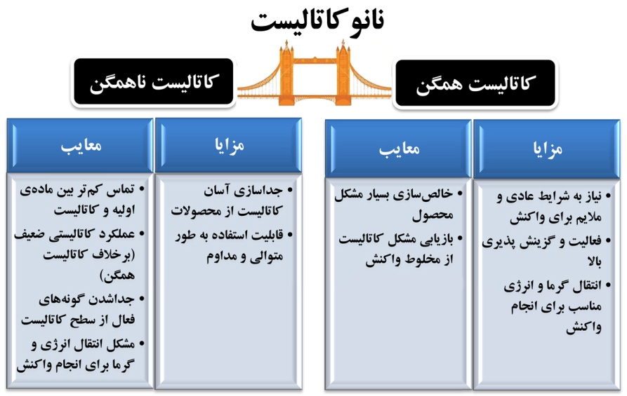 جدول 2. نانوکاتالیست پلی بین کاتالیست همگن و ناهمگن با حفظ مزایای هر دوی آنها است