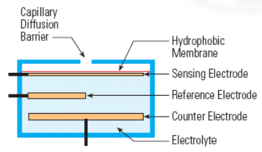 به طور کلی حسگرهای الکتروشیمیایی1 از طریق واکنش ردوکس گونه مورد نظر روی سطح الکترود و تولید علامت الکتریکی متناسب با غلظت گونه آنالیت عمل می کنند. یک حسگر الکتروشیمیایی نوعی، شامل یک الکترود حسگر2 (الکترود کار) و الکترود مقابل3 است که به وسیله ی لایه ی نازکی از الکترولیت4 از هم جدا شده اند. گونه ی مورد نظر پس از آنکه از یک سوراخ ورودی مویینه داخل حسگر شد از یک سد آب گریز5 عبور کرده و نهایتاً به سطح الکترود می رسد (شکل 1).